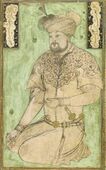 Painting of a Kushan ruler (probably Huvishka, seated) and attendants, Bactria, 74-258 CE.[59]