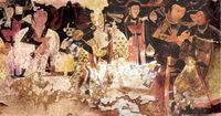 The banquet scenes in the murals of Balalyk Tepe show the life of the Hephthalite ruling class of Tokharistan.[104][98][99][95]