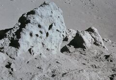 Samples 15470 to 15476 were collected near where the rover was parked to the south of the rim of Dune. Samples 15485, 15486, and 15499 were collected from the largest boulder in the photograph above. Sample 15498 was collected nearby.[3]