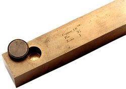 In the years that followed the passing of the 1878 act, the standard imperial yard was found to be shrinking at a rate, confirmed in 1950, to be nearly one part per million every 30 years.[59][60] On the other hand, the international prototype metre, manufactured from a platinum-iridium alloy rather than brass by a British firm, which in 1889 replaced the mètre des Archives as the standard for the metre, was found to be more stable than the standard yard.[61] Both the United States and the United Kingdom, as signatories of the Metre Convention, took delivery of copies of both the standard metre and the standard kilogram. The "Mint pound" was also found to be of poor workmanship.