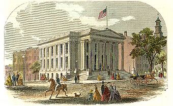 Prior to the United States Declaration of Independence in 1776, the Thirteen Colonies that were to become the United States used the English system of measurement.[30] The Articles of Confederation, which predated the Constitution, gave the central government "the sole and exclusive right and power of...fixing the Standard of Weights and Measures throughout the United States."[31] Subsequent to the formation of the United States, the Constitution reaffirmed the right of Congress to "fix the Standard of Weights and Measures" but reserved the right to regulate commerce and weights and measures to the individual states.[32]