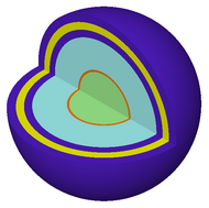 In QUADRISO particles a burnable neutron poison (europium oxide or erbium oxide or carbide) layer surrounds the fuel kernel of ordinary TRISO particles to better manage the excess of reactivity. If the core is equipped both with TRISO and QUADRISO fuels, at beginning of life neutrons do not reach the fuel of the QUADRISO particles because they are stopped by the burnable poison. During reactor operation, neutron irradiation of the poison causes it to "burn up" or progressively transmute to non-poison isotopes, depleting this poison effect and leaving progressively more neutrons available for sustaining the chain-reaction. This mechanism compensates for the accumulation of undesirable neutron poisons which are an unavoidable part of the fission products, as well as normal fissile fuel "burn up" or depletion. In the generalized QUADRISO fuel concept the poison can eventually be mixed with the fuel kernel or the outer pyrocarbon. The QUADRISO[11] concept was conceived at Argonne National Laboratory.