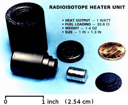A radioisotope heater unit (RHU) typically provides about 1 watt of heat each, derived from the decay of a few grams of plutonium-238. This heat is given off continuously for several decades.