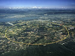 Particles, such as protons, enter the LHC through a series of small particle accelerators (in a ring shape), each one pushing them closer and closer to the speed of light until they are released into the larger LHC ring. Some of the accelerators inject particles moving clockwise, others inject counterclockwise particles. When these opposing particle streams collide, they release enormous amounts of energy. This energy is recorded by four giant detectors: ALICE (A Large Ion Collider Experiment), CMS (Compact Muon Solenoid), ATLAS (A Toroidal LHC Apparatus), and LHCb (Large Hadron Collider beauty).[5] All this data is processed using a new system of computing called "The Grid." The Grid consists of 80,000 computers in 50 countries, all designed to number-crunch the huge amounts of data the LHC is expected to produce, which amounts to 15,000 terabytes (or 15 petabytes) per annum.[6]
