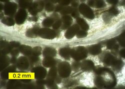 Peloids are allochems that are composed of micrite, irrespective of size, shape, or origin. The two primary types of peloids are pellets and intraclasts. Another type of peloid is pseudo-oolith.[1][2][3]