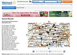 The locator also provides important information about each location, including its address, phone number, hours of operation, services provided, and sometimes directions to the location.[3] On many sites, searches can be narrowed to locations providing certain services not provided at all locations (e.g. 24-hour operation, handicap accessibility, pharmacies).