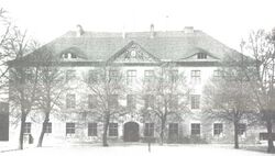 The old university building was taken over by the City of Frankfurt and turned into a schoolhouse. It was hardly damaged in World War II and first used as a home for refugees from the former eastern territories. Afterwards the building stood empty until it was controversially demolished in the early 1960s. Only the arch of the main entrance has been preserved as a monument.
