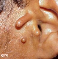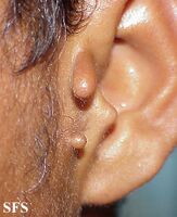 The general presentation is of a skin-covered nodule, papule, or nodule of the skin surface, usually immediately anterior to the auricle.[2] However, it may be anywhere within the periauricular tissues.[2] Bilateral presentation can be seen.[2]