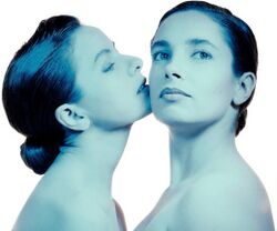 Gill (2008) presents a shift in the representation of women by breaking advertising segments down into several different identities. Of them is the "hot lesbian".[74] The "hot lesbian" identity portrays the fantasy of two or more lesbian women, whose physical appearance is considered "hot" according to conventional patriarchal beauty standards, engaging in "suggestive" lesbian behaviour, or explicit sexual activity. There are many notable examples of ads portraying hot lesbians in them (Canada Oil Sands,[75] Versace clothing, Skyy Blue Vodka, Pornstar clothing, Nikon camera, American Apparel clothing, Calvin Klein products, Miller Light beer, etc.).