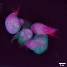 ![]() T cells are part of adaptive immune response (4D live imaging of T cell nuclear dynamics imaged with a holotomographic microscope.) | |