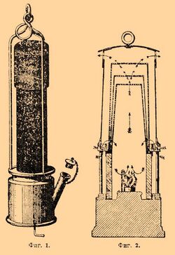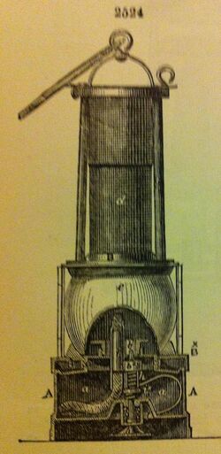 Improper use of safety lamps defeated the purpose of the safety lamp and caused risk. When the flame went out in a lamp there was a temptation for the collier to open and relight it. Some opened the lamps to light tobacco pipes underground.[20] Both of these practices were strictly forbidden. The miner was expected to return to the shaft, a round trip of up to a few miles, to relight an extinguished lamp. For men on piece work paid for what they produced, a relighting could cost them perhaps 10% of their day's pay, encouraging them to take the risk. Miners would also damage the mesh to make the lamp brighter.[21] To prevent dangerous relighting (or opening the lamp to light a pipe), from the mid-century onwards, and particularly after the 1872 act, lamps had to have a lock mechanism which prevented the miner opening the lamp. Two schemes existed: either a special tool was required which was kept at the pit head, or else opening the lamp extinguished the flame. The latter mechanism can be seen in the Mueseler, Landau, and Yates lamps below. Such a lamp was known as a protector lamp, a term picked up and used as a company name.[22] Only on the return to the bank could the lamp man open the lamp for refilling and service. Various different locking mechanisms were developed; miners tended to be ingenious in finding ways of circumventing them. A number of additional lit lamps were supposed to accompany each gang of men, but restricting the number was an obvious economy for the pit owners.