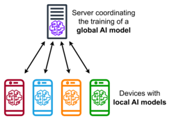 To ensure good task performance of a final, central machine learning model, federated learning relies on an iterative process broken up into an atomic set of client-server interactions known as a federated learning round. Each round of this process consists in transmitting the current global model state to participating nodes, training local models on these local nodes to produce a set of potential model updates at each node, and then aggregating and processing these local updates into a single global update and applying it to the global model.[2]