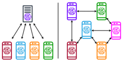 In particular, orchestrator-less distributed networks are one important variation. In this case, there is no central server dispatching queries to local nodes and aggregating local models. Each local node sends its outputs to several randomly-selected others, which aggregate their results locally. This restrains the number of transactions, thereby sometimes reducing training time and computing cost.[14]