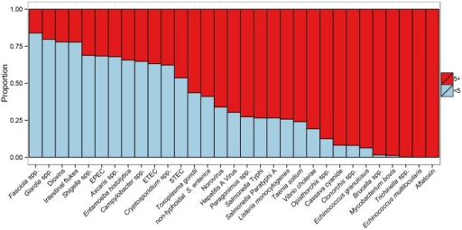 The Food and Agriculture Organization of the United Nations and The World Health Organization have published a global ranking of foodborne parasites using a multicriteria ranking tool concluding that Taenia solium was the most relevant, followed by Echinococcus granulosus, Echinococcus multilocularis, and Toxoplasma gondii.[163] The same method was used regionally to rank the most important foodborne parasites in Europe ranking Echinococcus multilocularis of highest relevance, followed by Toxoplasma gondii and Trichinella spiralis.[164]