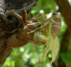 In arthropods, such as insects, arachnids and crustaceans, molting is the shedding of the exoskeleton, or cuticle, typically to let the organism grow. The exoskeleton is a hard, inert, outer structure that supports and protects the animal. For some arthropods, it is referred to commonly as a shell.
