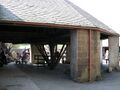Housing for top pivot of main axle, bolted to its own tie beam, separate from roof truss (visible above)