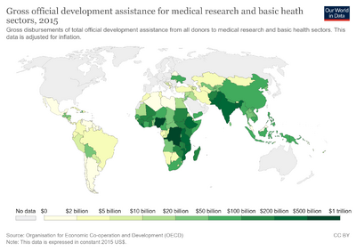 In the United States, data from ongoing surveys by the National Science Foundation (NSF) show that federal agencies provided only 44% of the $86 billion spent on basic research in 2015.[5] The National Institutes of Health and pharmaceutical companies collectively contribute $26.4 billion and $27 billion, which constitute 28% and 29% of the total, respectively. Other significant contributors include biotechnology companies ($17.9 billion, 19% of total), medical device companies ($9.2 billion, 10% of total), other federal sources, and state and local governments. Foundations and charities, led by the Bill and Melinda Gates Foundation, contributed about 3% of the funding. These funders are attempting to maximize their return on investment in public health.[6] One method proposed to maximize the return on investment in medicine is to fund the development of open source hardware for medical research and treatment.[7]