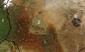Satellite view of Syria and surrounding countries with position of Hauran highlighted
