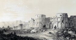 After 833, the Abbasid Caliphate had a chain of forts constructed from Zanjan to Ardabil to counter the 817–837 rebellion of the Khurramite leader Babak Khorramdin (died 838).[10] In the 10th-century, Zanjan was ruled by local Daylamite dynasties such as the Musafirids (919–1062).[9] According to the 13th-century Arab geographer Yaqut al-Hamawi (died 1229), the Persians referred the city as "Zangan."[11] During the Ilkhanate era (1256–1335), the inhabitants were reported by Hamdallah Mustawfi to have spoken "pure Pahlavi" (pahlavī-e rāst), a Median or northern form of Persian.[12][13]