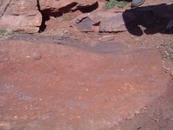 Antidunes are the sediment[2] bedforms created by fast, shallow flows of water with a Froude number greater than 1. Antidunes form beneath standing waves of water that periodically steepen, migrate, and then break upstream. The antidune bedform is characterized by shallow foresets, which dip upstream at an angle of about ten degrees that can be up to five meters in length.[3] They can be identified by their low angle foresets. For the most part, antidunes bedforms are destroyed during decreased flow, and therefore cross bedding formed by antidunes will not be preserved.[4][5]