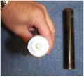 Improvised pipe gun; showing 12 gauge shotgun shell