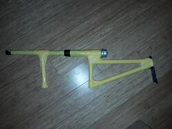 Zip guns are generally crude homemade firearms consisting of a barrel, breechblock and a firing mechanism. For small, low-pressure cartridges, like the common .22 caliber rimfire cartridges, even very thin-walled tubing works as a barrel, strapped to a block of wood for a handle. A rubber band powers the firing pin, which the shooter pulls back and releases to fire. Such weak tubing results in a firearm that can be as dangerous to the shooter as the target; the poorly fitting smoothbore barrel provides little accuracy and is liable to burst upon firing.[1] The better designs use heavier pipes and spring loaded trigger mechanisms. Larger zip guns, such as homemade shotguns called tumbera (Argentina), bakakuk[7] (Malaysia), or sumpak[8] (Philippines) are also made of improvised materials like nails, steel pipes, wooden pieces, bits of string, etc.