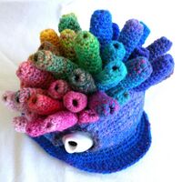An elaborate Coral Tea Cosy, crocheted to suggest the appearance of a coral reef