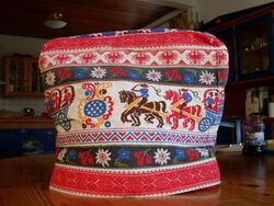 A tea cosy or tea warmer is a cover for a teapot,[1] traditionally made of cloth. It insulates a teapot, keeping the contents warm. Their use predates the invention of vacuum flasks as a means of keeping hot liquids hot.[citation needed]