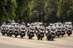 A police escort, also known as a law enforcement escort, is a service offered by police and law enforcement to assist in transporting important individuals or resources.