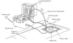 In a typical repair, the patch is applied under vacuum and at temperatures high enough for the curing of the adhesive. For these purposes a portable hot bonder device may be used for in the field repairs. For more complex and higher quality repairs an autoclave should be used. A hot bonder unit is shown in Figure 5.