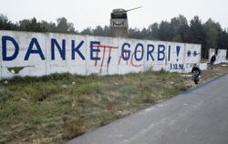 In the Revolutions of 1989, most of the Marxist–Leninist states of Central and Eastern Europe held multi-party elections resulting in regime change.[197] In most countries, like Poland and Hungary, this was achieved peacefully, but in Romania, the revolution turned violent, and led to Ceaușescu's overthrow and execution.[197] Gorbachev was too preoccupied with domestic problems to pay much attention to these events.[198] He believed that democratic elections would not lead Eastern European countries into abandoning their commitment to socialism.({{{1}}}, {{{2}}}) In 1989, he visited East Germany for the fortieth anniversary of its founding;({{{1}}}, {{{2}}}) shortly after, in November, the East German government allowed its citizens to cross the Berlin Wall, a decision Gorbachev praised. Over the following years, much of the wall was demolished.[199] Neither Gorbachev nor Thatcher or Mitterrand wanted a swift reunification of Germany, aware that it would likely become the dominant European power. Gorbachev wanted a gradual process of German integration but Kohl began calling for rapid reunification.[200] With German reunification in 1990, many observers declared the Cold War over.[201]