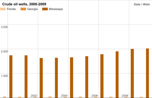Crude oil wells in Florida and neighboring states (2000-2009)