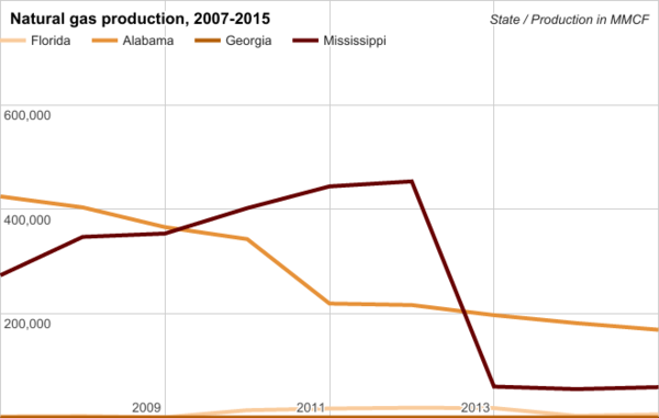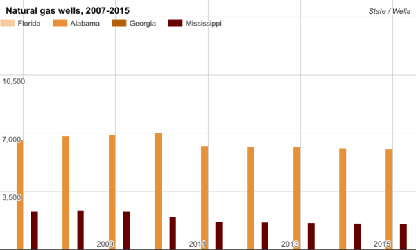 Producing natural gas wells in Florida and neighboring states (2007-2015)