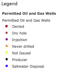 In 2016, Florida had 165 crude oil and natural gas wells. Of that total, 64 wells were producing wells (wells capable of producing oil or gas)—39 percent of wells in 2016. The remaining wells were injection and disposal wells (wells used to place water, wastewater, salt water, and/or water with chemicals into underground geological formations), and shut-in wells (wells capable of producing oil or gas but are not currently producing). The map and legend below shows all permitted oil and natural gas wells in Florida. An interactive version of the map can be accessed here.[12][13]