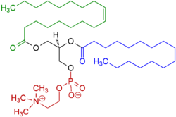 Choline is a precursor for the neurotransmitter acetylcholine. Choline is also a constituent of lecithin, which is present in many plants and animal organs.[35] It is found in phospholipids. For example, phosphatidylcholines, a major component of biological membranes, are a member of the lecithin group of fatty substances in animal and plant tissues.[36]