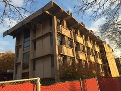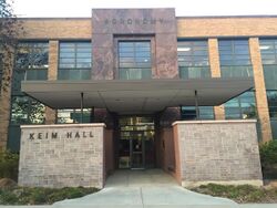 The firm designed several buildings for the University of Nebraska, Lincoln following WWII. In 1949, the Agronomy Building was to be redesigned. The then head of the department of Architecture, Linus Burr Smith drew up original plans and stated that only four firms in Nebraska were capable of completing the design. Steele, Sandham and Steele were chosen. The Agronomy Building was considered to be sophisticated and elegant at the time it was constructed, with state of the art laboratories and modern amenities. The building was renamed for a long time department chair, Franklin D Keim, in 1957 who had retired in 1952 after the building's completion.[7] The firm was renamed Steele, Sandham and Weinstein following the death of William Steele Sr. and the partnering of Alex Weinstein. They designed Behlen Laboratory under this name in 1962. Behlen Laboratory was one of the few brutalist buildings built in Nebraska.[8]
