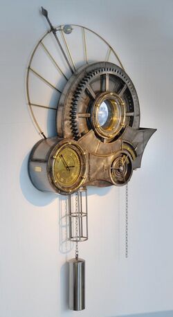 In 2009, artist Tim Wetherell created a large wall piece for Questacon (The National Science and Technology centre in Canberra, Australia) representing the concept of the clockwork universe. This steel artwork contains moving gears, a working clock, and a movie of the lunar terminator.