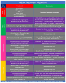 In 2018, the FDA approved atezolizumab in combination with bevacizumab, paclitaxel, and carboplatin for the first-line treatment of people with metastatic non-squamous, non-small cell lung cancer (NSCLC) with no EGFR or ALK genomic tumor aberrations.[46]