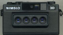 - Nimslo 3D – The first compact consumer level lenticular camera, designed to take 3D prints that are viewable without glasses or special technique. Though it didn't "catch on" and was soon discontinued, it inspired many 3 and 4 lens clones marketed well into the 1990s.