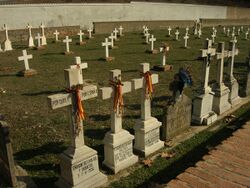 Estimates of the number of religious men killed vary greatly. One estimate is that of the 30,000 priests and monks in Spain in 1936, 13% of the secular priests and 23% of the monks were killed, amounting to 6800 religious personnel altogether.[7][59] Some 283 religious women were killed, some of them badly tortured.[63] 13 bishops were killed from the dioceses of Siguenza Lleida, Cuenca, Barbastro, Segorbe, Jaén, Ciudad Real, Almeria, Guadix, Barcelona, Teruel and the auxiliary of Tarragona.[63] Aware of the dangers, they all decided to remain in their cities: "I cannot go, only here is my responsibility, whatever may happen," said the Bishop of Cuenca.[63] In addition 4,172 diocesan priests, 2,364 monks and friars, among them 259 Claretians, 226 Franciscans, 204 Piarists, 176 Brothers of Mary, 165 Christian Brothers (also called the De La Salle Brothers), 155 Augustinians, 132 Dominicans, and 114 Jesuits were killed.[64] In some dioceses, the number of secular priests killed was overwhelming: