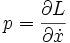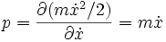 is the velocity. In some cases the generalized momentum is the same as the momentum defined above. For example, for a free particle the Lagrangian equals the kinetic energy and so
