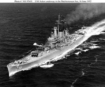 Three heavy cruisers of the Des Moines-class, modified from the Boston-class, were commissioned after WWII: USS Des Moines, USS Salem, and USS Newport News. They were larger (17,000 tons) than the Baltimores. All, at one time or another, were flagship of the United States Sixth Fleet, although admirals probably preferred to be on the Newport News and Salem (CA 138), which were air conditioned. The namesake of the class, Des Moines (CA 134), was not.