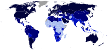 The average global birth rate was 18.1 births per 1,000 total population in 2021.[8] The death rate was 7.7 per 1,000. The RNI was thus 1.6 percent. In 2012 the average global birth rate was 19.611 according to the World Bank[9] and 19.15 births per 1,000 total population according to the CIA,[10] compared to 20.09 per 1,000 total population in 2007.[11]