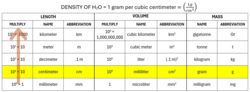 On 7 April 1795, the gram was defined in France to be equal to "the absolute weight of a volume of pure water equal to a cube of one-hundredth of a meter, and at the temperature of melting ice".[94] For practical purposes though, a metallic reference standard was required, one thousand times more massive, the kilogram. Work was therefore commissioned to determine precisely the mass of one liter of water. In spite of the fact that the decreed definition of the gram specified water at 0 °C (32 °F)—a highly reproducible temperature—the scientists chose to redefine the standard and to perform their measurements at the temperature of highest water density, which was measured at the time as 4 °C (39 °F).[95]