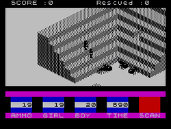 Knight Lore was followed three months later by Alien 8 and in 1986 by Pentagram. A second engine, Filmation II, was introduced in 1985 and used in two titles, Nightshade[3] and Gunfright.[4] This new version of the engine introduced large scrolling environments (much like Ant Attack's) rather than flip-screens. To avoid obscuring the player character, streets and buildings rendered by this engine would disappear to their outlines when the player character walked behind them,[5] and the ability to flip the viewpoint through 180 degrees with a press of the Z key was introduced. Although Filmation II increased the graphical complexity of the titles that used it, the gameplay was simplified; the player was no longer able to jump (and indeed had no reason to) and was confined to essentially simpler environments, with no obstacles other than the buildings themselves. This simplification resulted in Nightshade and Gunfright being more straightforward shooter games than the puzzle based Filmation I titles.