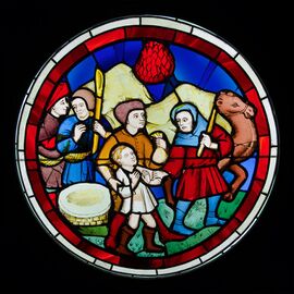 The early Gothic windows each had a theme or subject, such as "The Passion of Christ", illustrated by dozens of individual medallions. In tall lancet windows, there were one or two medallions on each level, three at the most. each no larger than a square meter. The circular medallions were separated by wide borders with geometric or floral decoration. The story of the window could be read from medallion to medallion, usually from the bottom to the top. The subject matter was not chosen by the artist, but by the ecclesiastical authorities of the cathedral. They illustrated the lives of the Saints and Christian martyrs, and the episodes of the New and Old Testament, for the large part of the congregation which could not read. Many windows included panels illustrating the work of the guild, such as the masons or bakers, which had financed them.[2]