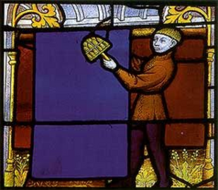 Copies of each section of the window, showing each piece of glass, were carefully traced and given to the terrier, or glassmaker. He carefully cracked off the pieces he needed from larger pieces of colored glass, using a heated iron tool in the early period, and a diamond cutter in the later period.