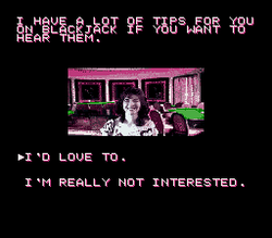 The objective is to win money at a casino. The player begins with $2000. Games include blackjack, slot machines, roulette, horse racing, Keno, video poker, and Red Dog. The player can talk to non-player characters (a feature omitted in the Japanese version), who may offer advice and clues on how to live the casino lifestyle. The game also offers $100 scratch-off tickets that players can keep scratching to try to win more money. However, if a picture of a bomb is uncovered, the ticket is void and all winnings are nullified.[3]