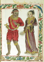 It was mentioned earlier that the royalties and nobilities of the Pre-colonial societies in the Visayas, Northern Mindanao, and Luzon (Cebu, Bohol Panay, Mindoro and Manila) also shared the many customs of royalties and nobles in Southeast Asian territories (with Hindu and Buddhist cultures), especially in the generous use of gold and silk in their costumes, as the Boxer Codex demonstrate. The measure of the prince's possession of gold and slaves was proportionate to his greatness and nobility.[39] When the Spaniards reached the shores of the Archipelago, they observed that there was hardly any "Indian" who did not possess chains and other articles of gold.[40]