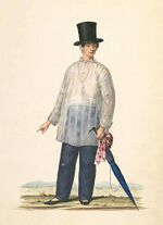 Left to right: [1] Illustration of a Spanish Filipino mestizo dressed in "Barong Tagalog" c. 1841; [2] The contemporary "Barong Tagalog" fashion;